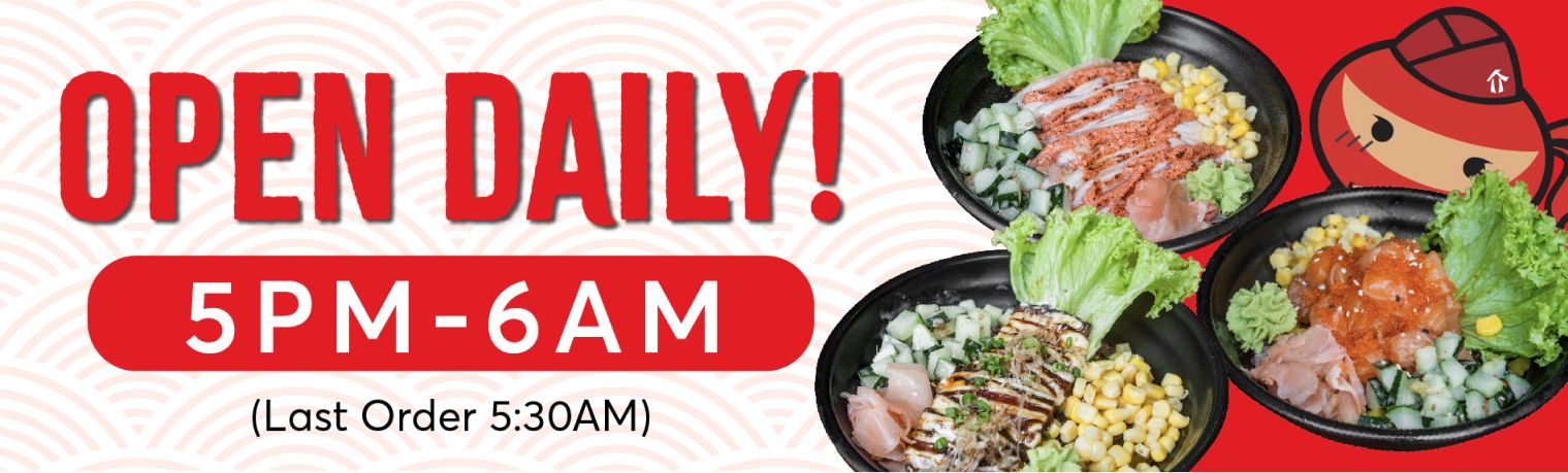 Tuna, Tako, Mekajiki, Hokki Shell (5pcs each), Salmon (10 pcs), Sweet Shrimp (5pcs)